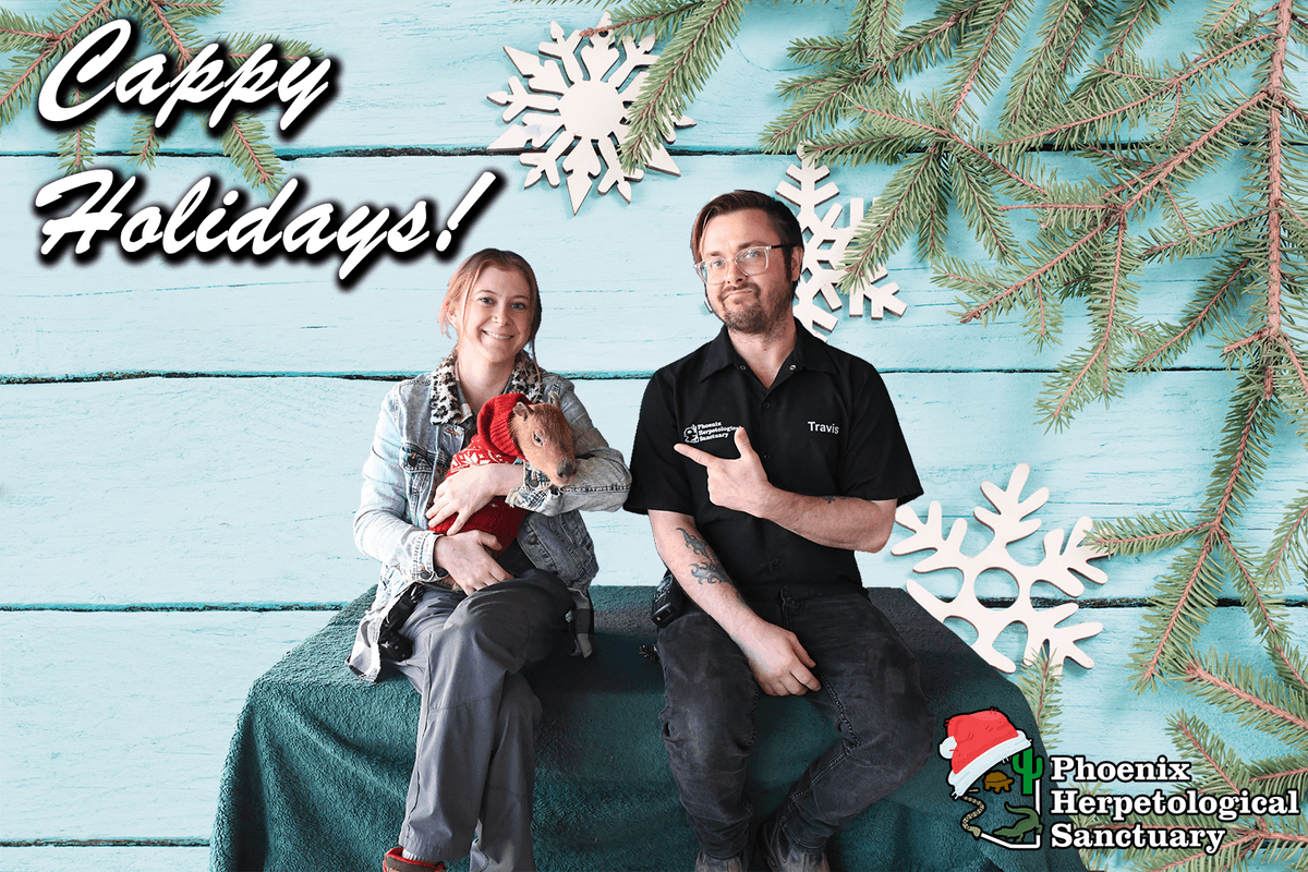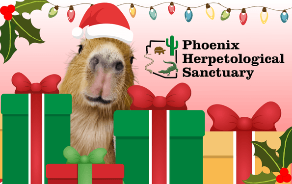 Our Capy Holidays Photoshoot is a great option to meet our adorable baby capybara "Petunia" and get a fun festive holiday photo with her!